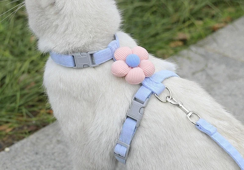 Caractéristiques du harnais pour chat avec laisse fleur :